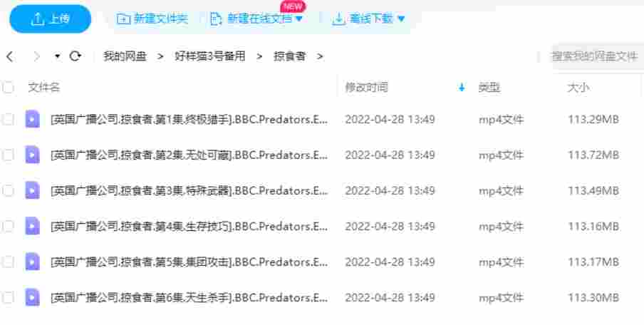 本资源为BBC纪录片之《掠食者》1-6集英语中文字幕高清合集[MP4]百度云网盘下载,本次资源格式为MP4,做压缩包处理,避免资源丢失,请先保存下载再解压便可播放。