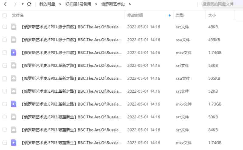 本资源为BBC纪录片之《俄罗斯艺术》1-3集英语外挂中字高清合集[MKV]百度云网盘下载,本次资源格式为MKV,做压缩包处理,避免资源丢失,请先保存下载再解压便可播放。