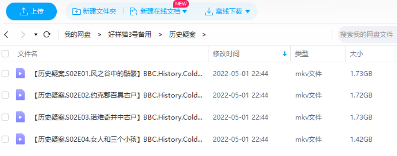 本资源为BBC纪录片之《历史疑案》1-4集英语中文字幕超清合集[MKV]百度云网盘下载,本次资源格式为MKV,做压缩包处理,避免资源丢失,请先保存下载再解压便可播放。