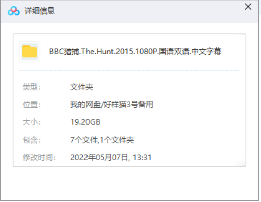 本资源为BBC纪录片之《猎捕(The Hunt)》1-7集英语中文字幕超清合集[MKV]百度云网盘下载,本次资源格式为MKV,做压缩包处理,避免资源丢失,请先保存下载再解压便可播放。