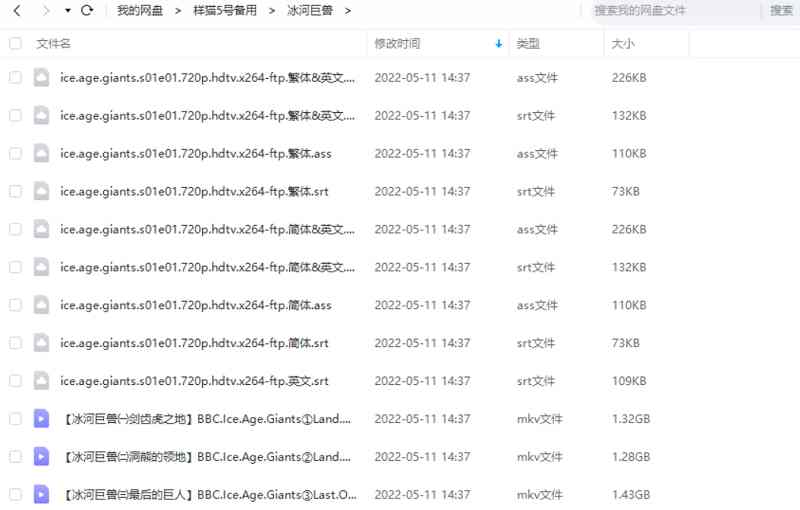 本资源为BBC纪录片之《冰河巨兽》1-3集高清英语外挂中文字幕[MP4]百度云网盘下载,本次资源格式为MP4,做压缩包处理,避免资源丢失,请先保存下载再解压便可播放。