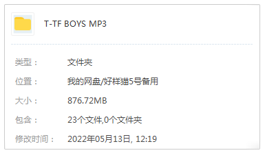 本资源为中国内地男子演唱组合/TFBOYS精选发烧歌曲合集-22张专辑/单曲(2013-2020)高音质音乐打包[MP3/859.32MB]百度云网盘下载+迅雷网盘,包含TFBOYS精选发烧歌曲合集-22张专辑,歌曲格式为MP3,按专辑做压缩包处理,为避免资源丢失,不要在线解压,请先保存在下载解压便可播放试听。