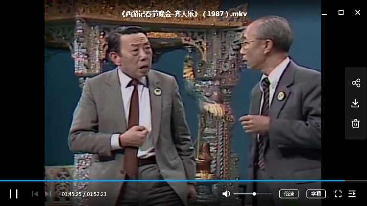 本资源为西游记剧组奉献《齐天乐春节联欢会》1987年完整无删减版[MKV]百度云网盘下载,本次资源格式为MKV,做压缩包处理,避免资源丢失,请先保存下载再解压便可播放。(此视频为1987年保存下来的唯一完整版视频数码修复版,视频为1.72GB,时间为1小时52分17秒,全程无广告无删减)