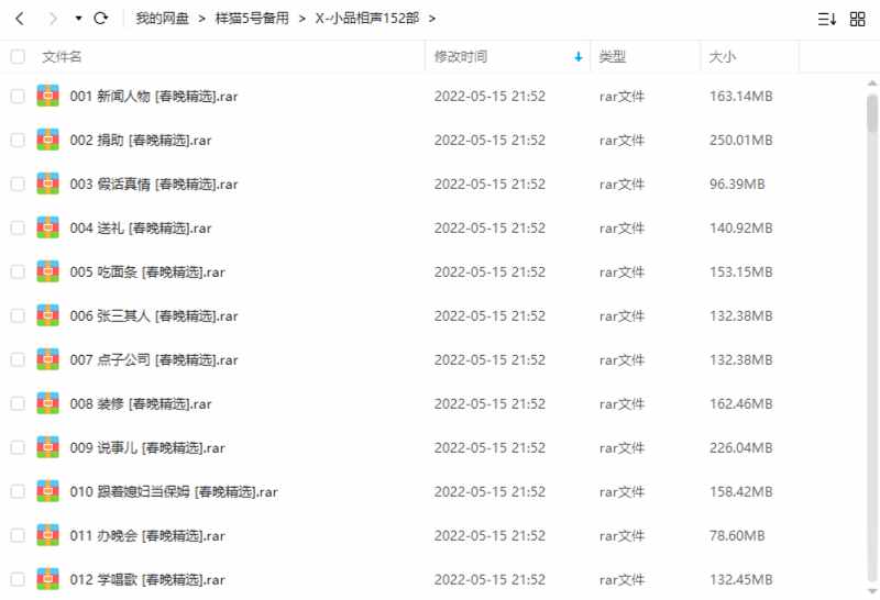 本资源为精选经典相声小品152部高清打包大合集[AVI]百度云网盘下载,本次资源格式为AVI,做压缩包处理,避免资源丢失,请先保存下载再解压便可播放。