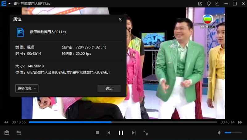 本资源为香港综艺《铁甲无敌奖门人(USA版)》1-45集粤语无字高清大合集[TS]百度云网盘下载,本次资源格式为TS,做压缩包处理,避免资源丢失,请先保存下载再解压便可播放。