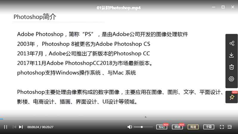 本资源为PS教程—73课从入门到精通视频教程国语高清合集[MP4]百度云网盘下载,本次资源格式为MP4,做压缩包处理,避免资源丢失,请先保存下载再解压便可播放。