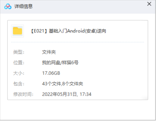 本资源为基础入门Android(安卓)逆向教学视频8个系列课程高清合集[MP4]百度云网盘下载,本次资源格式为MP4,做压缩包处理,避免资源丢失,请先保存下载再解压便可播放。