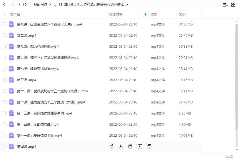 本资源为如何通过个人经验/能力/爱好进行副业赚钱课程视频高清合集[MP4]百度云网盘下载,本次资源格式为MP4,做压缩包处理,避免资源丢失,请先保存下载再解压便可播放。