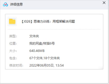 本资源为思维力训练:用框架解决问题教学视频高清打包合集[MP4]百度云网盘下载,本次资源格式为MP4,做压缩包处理,避免资源丢失,请先保存下载再解压便可播放。