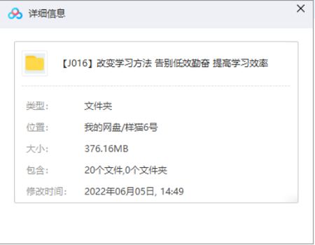 本资源为 改变学习方法-不断改变自己-提高学习效果教学视频合集打包[MP4]百度云网盘下载,本次资源格式为MP4,做压缩包处理,避免资源丢失,请先保存下载再解压便可播放。