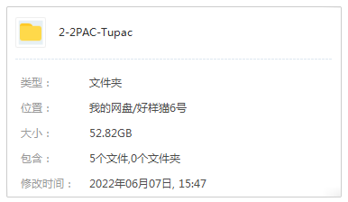 本资源为说唱之神图派克/2PAC所有精选发烧歌曲合集打包[FLAC/52.82GB]百度云网盘下载,歌曲格式为FLAC,因网盘和谐,故做压缩包处理,为避免资源丢失,不要在线解压,请先保存在下载解压便可播放试听。