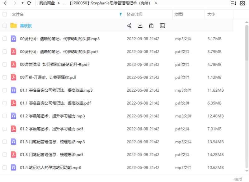 本资源为《Stephanie思维管理笔记术》课程合集[MP3/PDF]百度云网盘下载,本次资源格式为MP3+PDF,做压缩包处理,避免资源丢失,请先保存下载再解压便可播放。