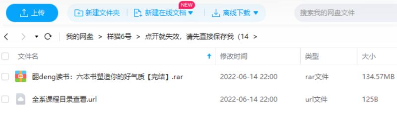 本资源为《樊登读书:六本书塑造你的好气质》课程音频打包合集[M4A]百度云网盘下载,本次资源格式为M4A,做压缩包处理,避免资源丢失,请先保存下载再解压便可播放。
