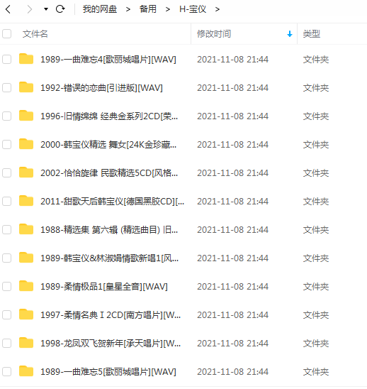 本资源为韩宝仪所有CD合集-52专辑CD[1988-2011年]无损音乐合集打包[WAV整轨/44.09GB]百度云网盘下载,一共包含韩宝仪整轨WAA无损音乐专辑52个,按专辑做压缩包处理,为避免资源丢失,不要在线解压,请先保存在下载解压便可播放试听。