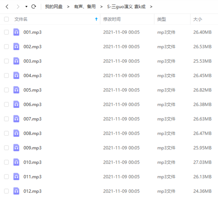 本资源为袁阔成经典评书《三国演义》有声小说366回音频合集[MP3]百度云网盘下载,有声小说格式为MP3,资源做压缩包处理,为避免资源丢失,不要在线解压,请先保存在下载解压便可播放试听。