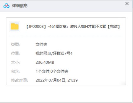 本资源为《走出自我认知的黑箱 | 周小宽:成年人如何才能不心累》完结版音频[M4A]百度云网盘下载,本次资源格式为M4A,做压缩包处理,避免资源丢失,请先保存下载再解压便可播放。