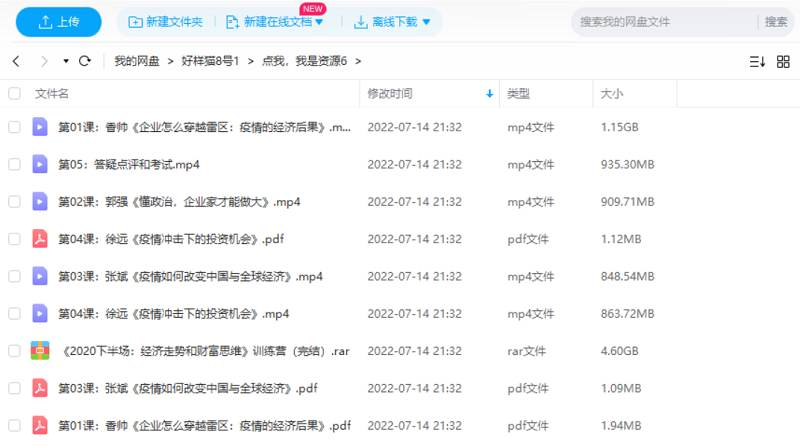 本资源为《2020下半场:经济走势和财富思维》课程视频合集[MP4/PDF]百度云网盘下载,本次资源格式为MP4+PDF,做压缩包处理,避免资源丢失,请先保存下载再解压便可播放。