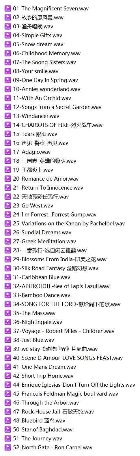 本资源为电台常用的52首背景歌曲合集-超高无损音乐打包[WAV/1.38GB]百度云网盘下载 ,包含电台常用的52首背景歌曲合集,歌曲格式为WAV,按专辑做压缩包处理,为避免资源丢失,不要在线解压,请先保存在下载解压便可播放试听。