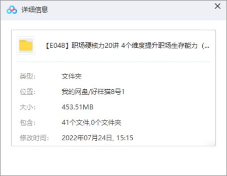 本资源为职场硬核力20讲-4个维度提升职场生存能力(逆袭,选择,关系,自我迭代)音频合集[PDF/MP3]百度云网盘下载,本次资源格式为PDF+MP3,做压缩包处理,避免资源丢失,请先保存下载再解压便可播放。