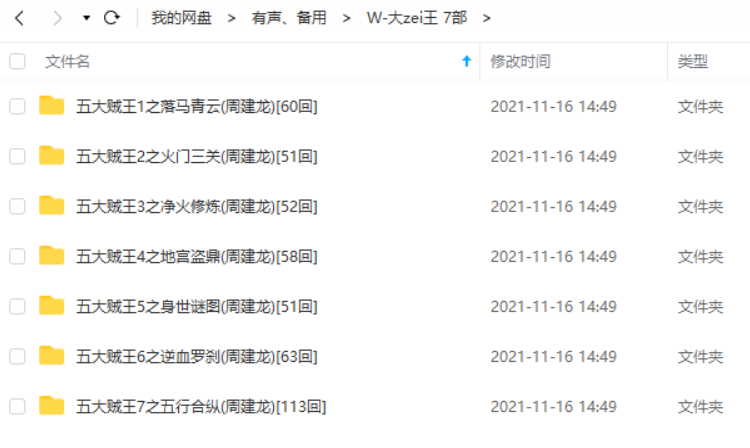 本资源为周建龙版《五大贼王》7部有声小说高清音质合集[MP3]百度云网盘下载,有声小说格式为MP3,资源做压缩包处理,为避免资源丢失,不要在线解压,请先保存在下载解压便可播放试听。