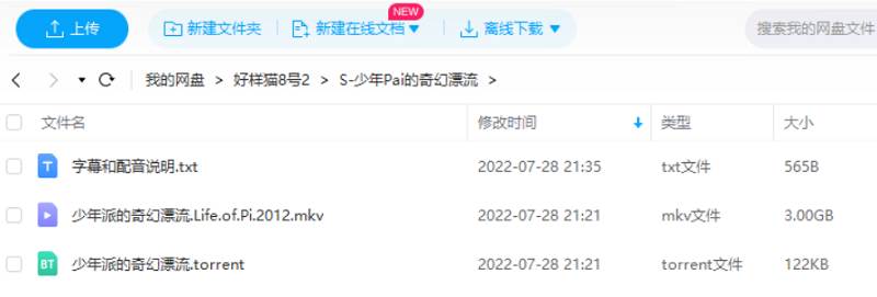 本资源为李安执导的电影《少年派的奇幻漂流》英语中文字幕高清视频[MKV]百度云网盘下载,本次资源格式为MKV,支持网盘在线观看,避免资源丢失,请先保存下载便可播放。