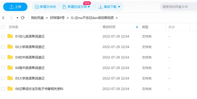 这套课程包括了从幼儿启蒙单词到大学单词,分类很详细,直接按分类学习即可,绝对是学英语背单词同学的福音,家长可以下载给孩子学习,自学者可以下载自学,非常好的一套资料,能够有效提升你的单词量,而且很快速!