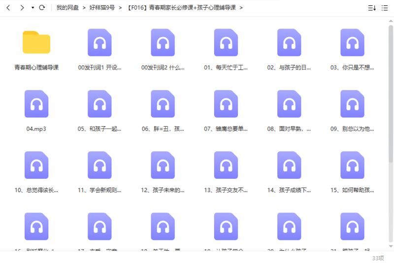 本资源为青春期孩子家长必备+孩子心理辅导课完结版音频合集[MP3]百度云网盘下载,本次资源格式为MP3,做压缩包处理,避免资源丢失,不要直接在网盘解压,请先保存下载再解压便可播放。