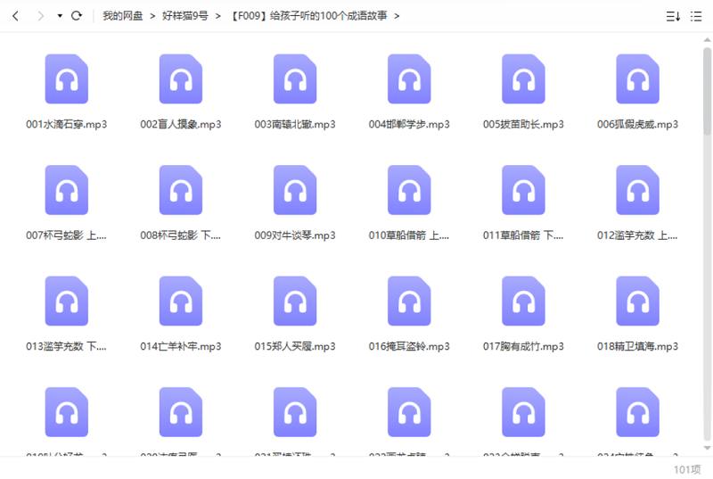 本资源为《给孩子听的100个成语故事》全集课程音频合集[MP3]百度云网盘下载,本次资源格式为MP3,做压缩包处理,避免资源丢失,不要直接在网盘解压,请先保存下载再解压便可播放。