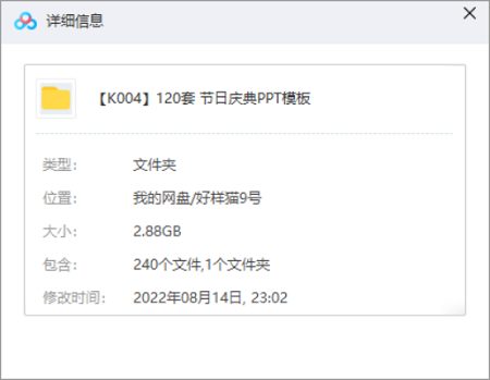 本资源为节日庆典——PPT模板120套资源大合集[PPT/PPTX]百度云网盘下载,本次资源格式为PPT+PPTX,做压缩包处理,避免资源丢失,不要直接在网盘解压,请先保存下载再解压便可播放。
