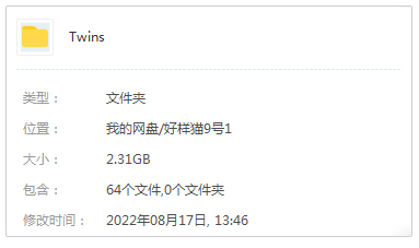 本资源为Twins组合64首精选歌曲合集-超高无损音乐打包[WAV/2.31GB]百度云网盘下载 ,包含Twins组合64首精选歌曲合集,歌曲格式为WAV,按专辑做压缩包处理,为避免资源丢失,不要在线解压,请先保存在下载解压便可播放试听。