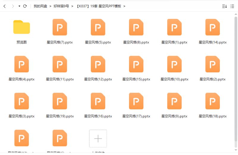 本资源为星空风PPT模板-19套PPT模板大合集[PPT/PPTX]百度云网盘下载,本次资源格式为PPT+PPTX,做压缩包处理,避免资源丢失,不要直接在网盘解压,请先保存下载再解压便可播放。