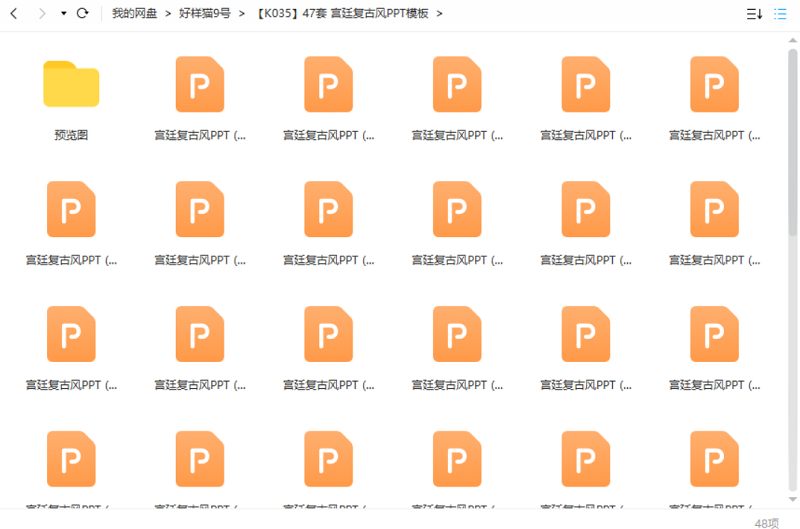 本资源为精选宫廷复古风PPT模板47套资源大合集[PPT/PPTX]百度云网盘下载,本次资源格式为PPT+PPTX,做压缩包处理,避免资源丢失,不要直接在网盘解压,请先保存下载再解压便可播放。