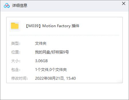本资源为精选AE插件-Motion Factory全套插件[RAR]百度云网盘下载,本次资源格式为RAR,做压缩包处理,避免资源丢失,不要直接在网盘解压,请先保存下载再解压便可播放。