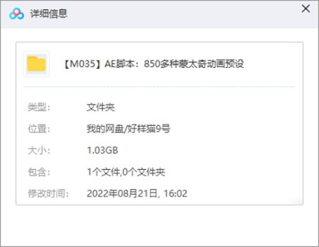 本资源为精选AE脚本-850多种蒙太奇动画预设合集[RAR]百度云网盘下载,本次资源格式为RAR,做压缩包处理,避免资源丢失,不要直接在网盘解压,请先保存下载再解压便可播放。
