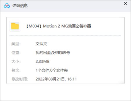 本资源为精选-Motion 2 MG动画必备神器[RAR]百度云网盘下载,本次资源格式为RAR,做压缩包处理,避免资源丢失,不要直接在网盘解压,请先保存下载再解压便可播放。