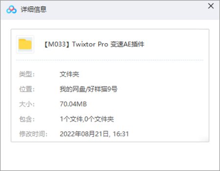 本资源为精选Twixtor Pro变速AE插件破解版[RAR]百度云网盘下载,本次资源格式为RAR,做压缩包处理,避免资源丢失,不要直接在网盘解压,请先保存下载再解压便可播放。