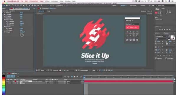 AEscripts Slice it Up 2是一款由Rendertom编写的AE切片工具,AE脚本主要通过复制图层,并使用用随机宽度的遮罩切成任意数量的图层。 Slice it Up 2脚本还提供控制设置,可以为每个切片调整随机,或线性偏移x,y和z位置,反转切片轴方向,切换水平/垂直切片对齐,调整扩展和旋转遮罩角度。