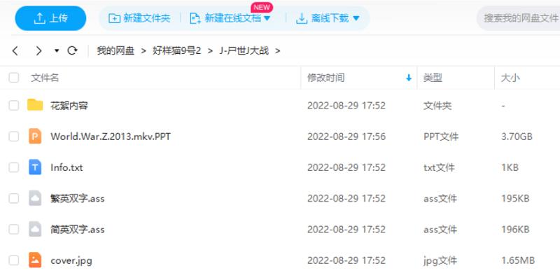 本资源为美国恐怖电影《僵尸世界大战》加长版超清国英双语中文字幕[MKV]百度云网盘下载,本次资源格式为MKV,支持网盘在线观看,避免资源丢失,请先保存下载便可播放。(保存到自己网盘后,重命名文件,去掉后缀.PPT,即可在线观看)