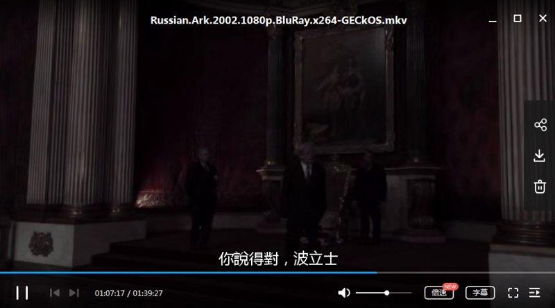 本资源为亚历山大·索科洛夫执导电影《俄罗斯方舟》中文字幕超清视频[MKV]百度云网盘下载,本次资源格式为MKV,支持网盘在线观看,避免资源丢失,请先保存下载便可播放。(保存到自己的网盘后,重命名视频文件,将后缀 .mkv1 换为 .mkv 即可在线观看!)