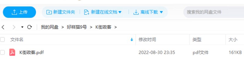 本资源为电影评论《K街政客》电子文档[PDF]百度云网盘下载,本次资源格式为PDF,做压缩包处理,避免资源丢失,不要直接在网盘解压,请先保存下载再解压便可播放。