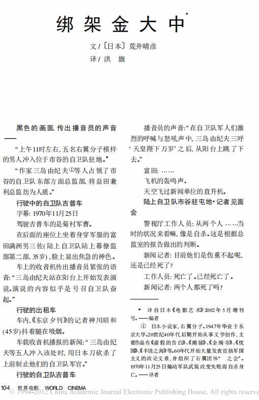 《绑架金大中》 是根据绑架金大中事件改编电影。1973年6月,驻日韩国大使馆一等书记官金车云等人接到命令,准备绑架正在日本的韩国在野党领袖金大中。行动代号”KT”。