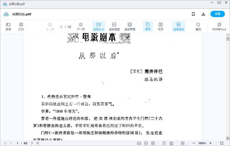 本资源为日本剧情电影《从那以后》剧本电子文档[PDF]百度云网盘下载,本次资源格式为PDF,做压缩包处理,避免资源丢失,不要直接在网盘解压,请先保存下载再解压便可播放。