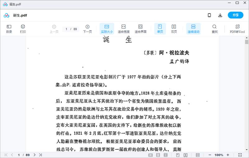 本资源为《诞生》电影全剧剧本电子版文档[PDF]百度云网盘下载,本次资源格式为PDF,做压缩包处理,避免资源丢失,不要直接在网盘解压,请先保存下载再解压便可播放。