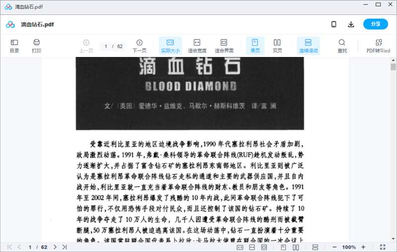 本资源为精选电影剧本-《滴血钻石(血钻)》电影全剧剧本电子文档[PDF]百度云网盘下载,本次资源格式为PDF,做压缩包处理,避免资源丢失,不要直接在网盘解压,请先保存下载再解压便可播放。