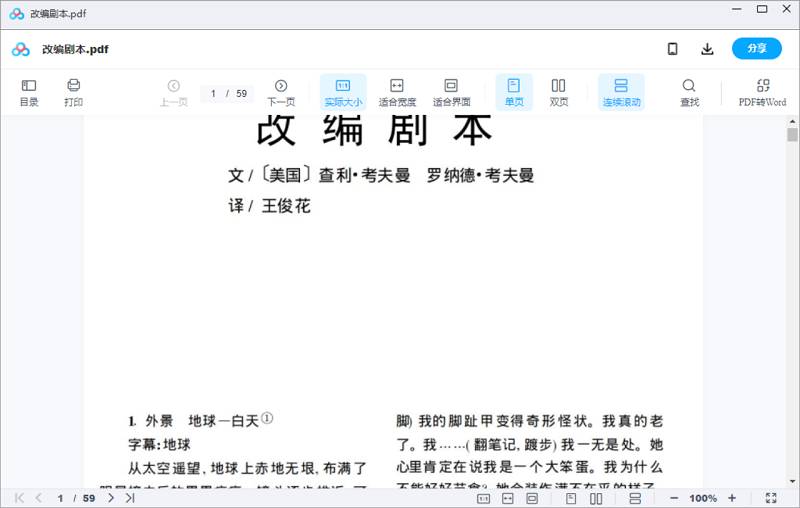 本资源为精选电影剧本-《改编剧本》电影剧本电子文档[PDF]百度云网盘下载,本次资源格式为PDF,做压缩包处理,避免资源丢失,不要直接在网盘解压,请先保存下载再解压便可播放。