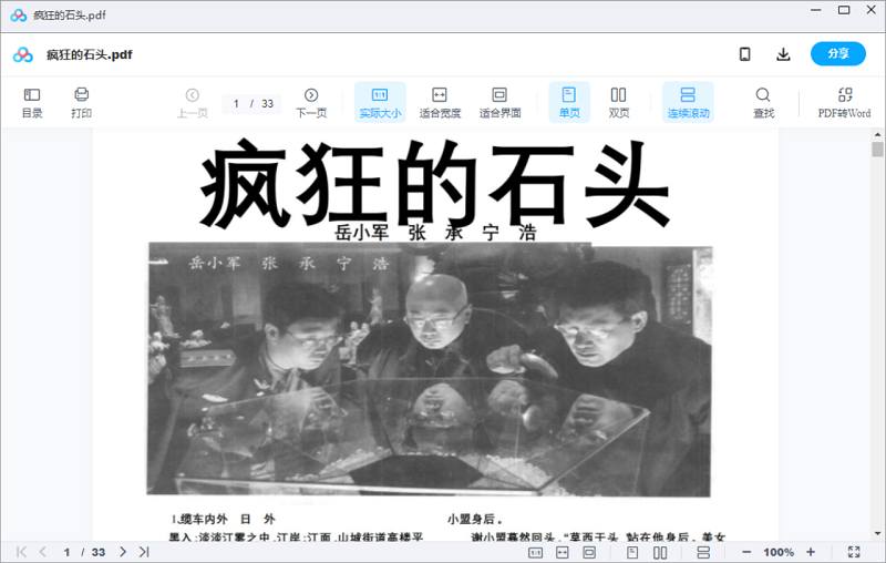 本资源为精选电影剧本-《疯狂的石头》电影剧本电子文档[PDF]百度云网盘下载,本次资源格式为PDF,做压缩包处理,避免资源丢失,不要直接在网盘解压,请先保存下载再解压便可播放。