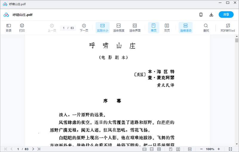 本资源为经典电影剧本-《呼啸山庄》电影剧本电子文档[PDF]百度云网盘下载,本次资源格式为PDF,做压缩包处理,避免资源丢失,不要直接在网盘解压,请先保存下载再解压便可播放。