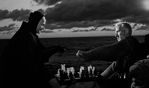 《第七封印》是一部寓言式的影片,受到了评论家肯定,片中骑士与象征死亡、身披裹尸布的人形对弈的镜头堪称经典,这部风格神秘诡异的影片虽然看起来有些晦涩,却蕴含着极为深刻的哲理。