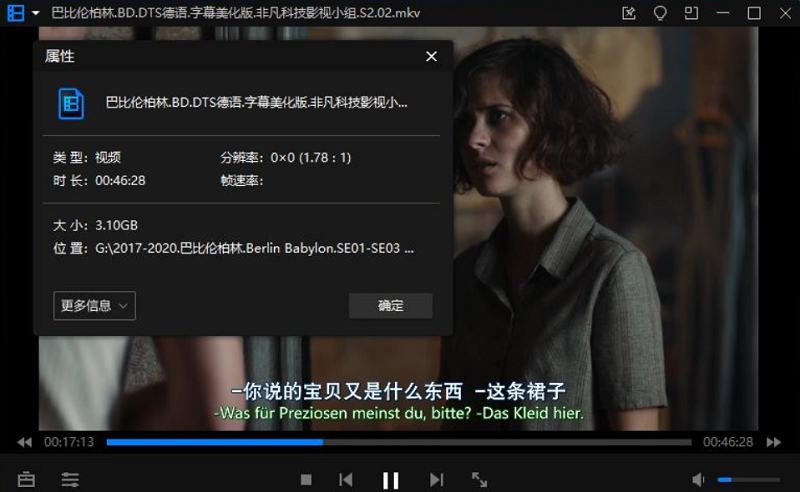 本资源为《巴比伦柏林》1-3季全38集德语中文字幕高清合集[MKV]百度云网盘下载,本次资源格式为MKV,做压缩包处理,避免资源丢失,不要直接在网盘解压,请先保存下载再解压便可播放。