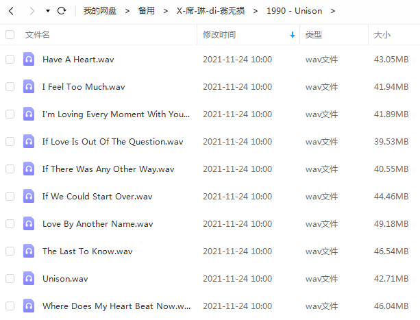 本资源为席琳迪翁/Celine Dion所有歌曲合集-34张专辑(1990-2008)无损音乐打包[WAV/25.29GB]百度云网盘下载,一共收录席琳迪翁(Celine Dion)34张无损专辑,歌曲格式为WAV,全部可以在线试听,但是为了避免资源丢失,尽量不要在线试听,请先保存到自己网盘在下载便可播放试听。